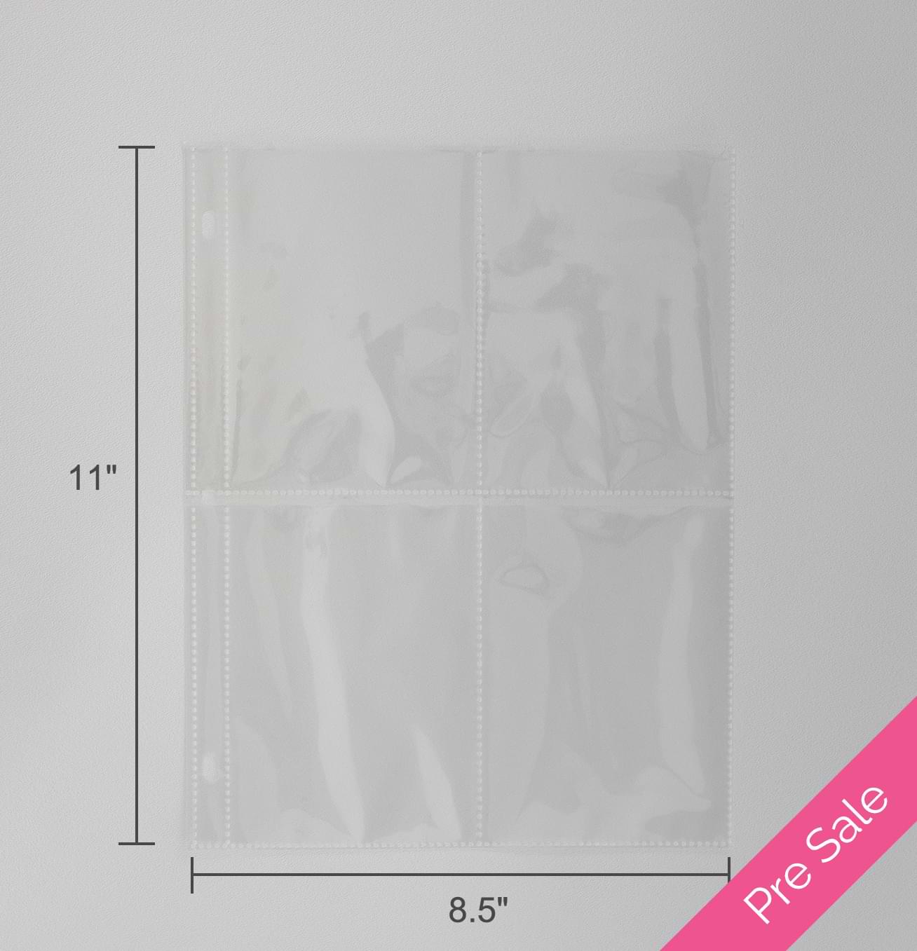 - 8 individual pockets (4 front pockets and 4 back pockets) per clear storage sleeve