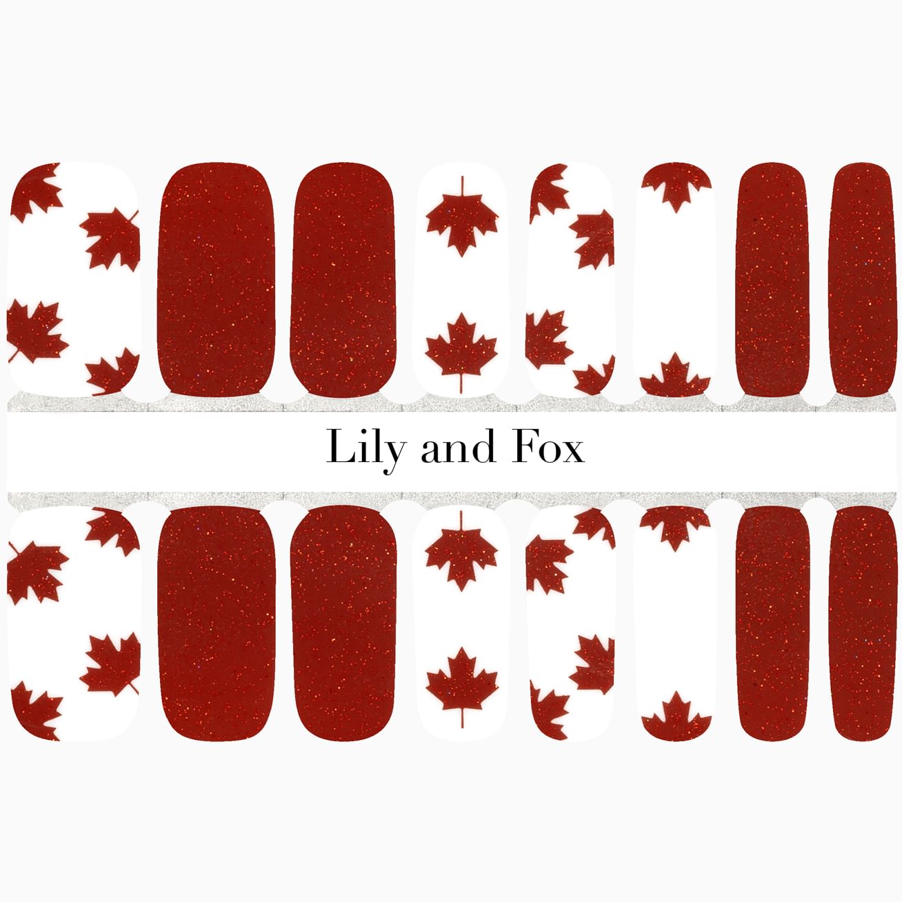 Oh Canada, this manicure is adorable, eh? This wrap set has international appeal with its glittery red solids wraps and multiple maple leaf designs set against white backgrounds. Protect the look by adding a layer of top coat.