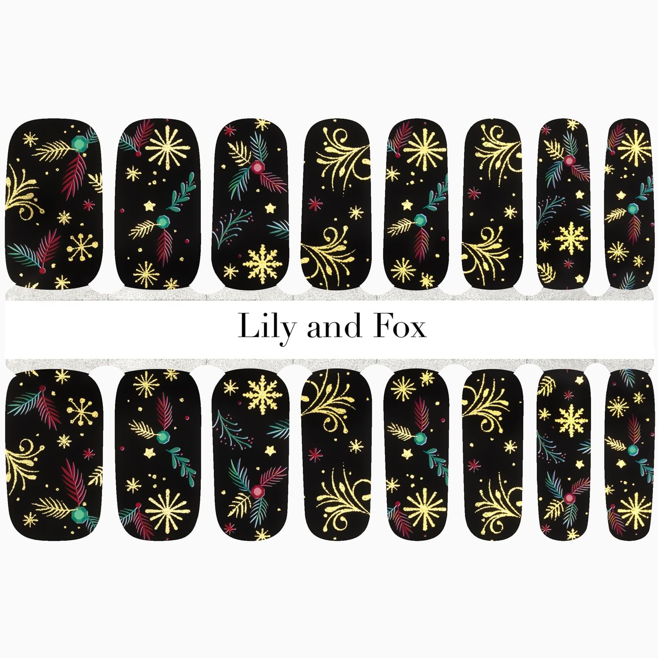 Turn up the holiday glam with Midnight Mistletoe - a red-and-green mistletoe pattern kissed with metallic gold accents on a glossy black base. It’s the perfect mix of festive and sophisticated, made to irresistibly sparkle at every party, while strong enough to stand up to all your holiday prep.