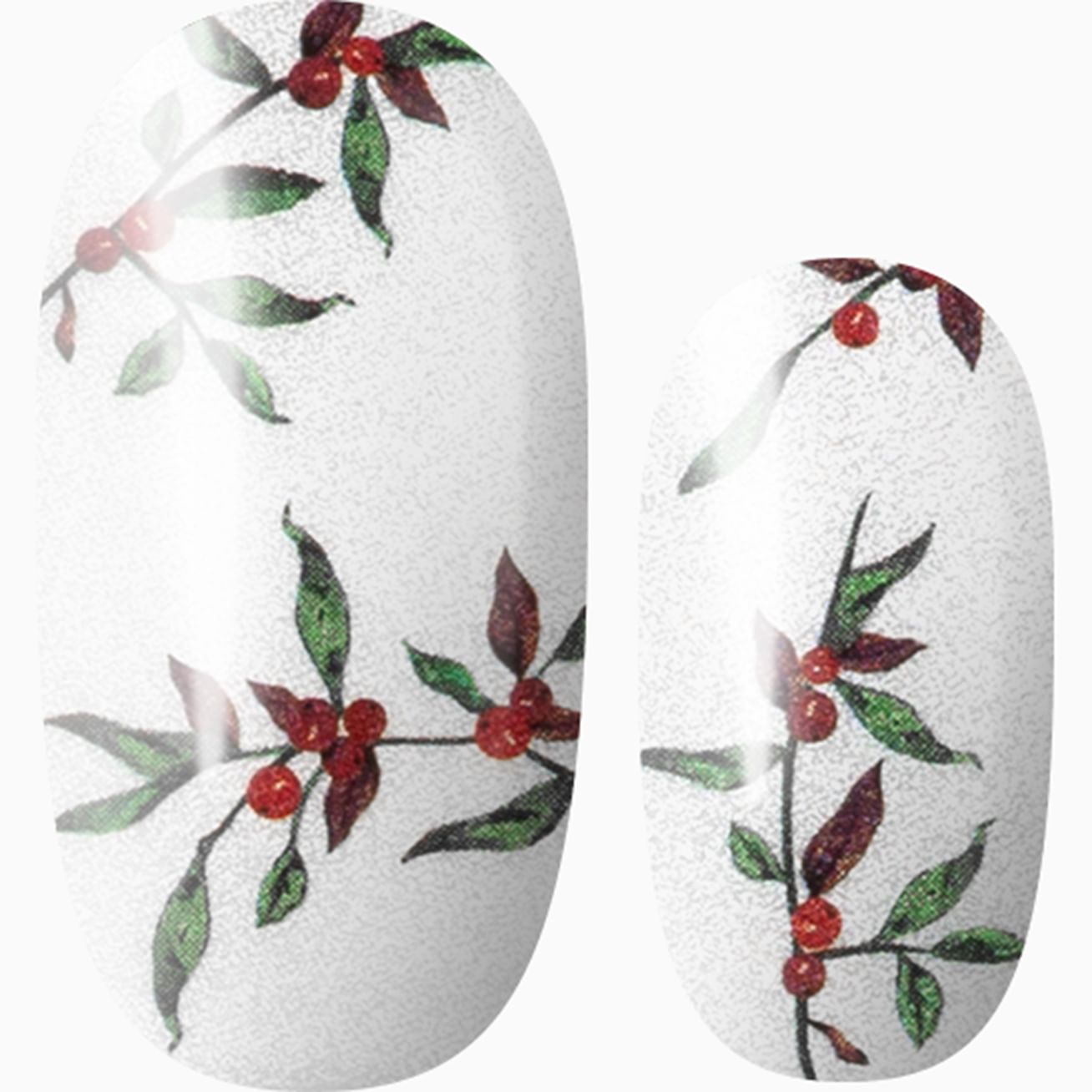 Tis the Season to Bloom features bright holly sprigs against a white background. This pearlescent design shimmers beautifully giving a snow-kissed appearance. Add a layer of top coat to keep your fingers decked with boughs of holly a little longer.Β