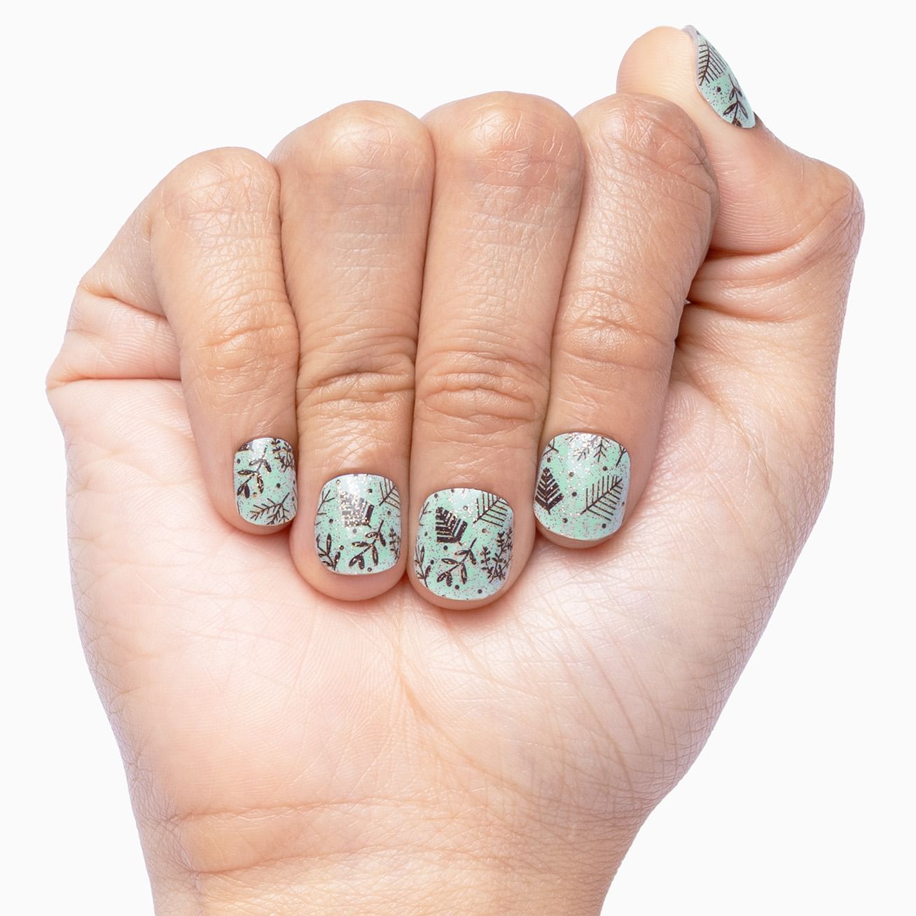 Blow Me Away combines gold glitter accents with windswept maple leaves, boughs, and branches for a manicure that says, "it's fall, y'all." With the design right at the cuticle, these are picture-perfect on short nails and give glam leaf peeps on longer fingertips. You'll be blown away by how quickly and easily these can be applied.